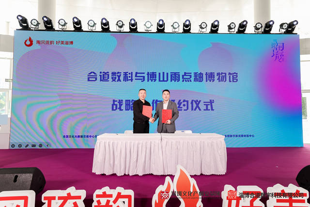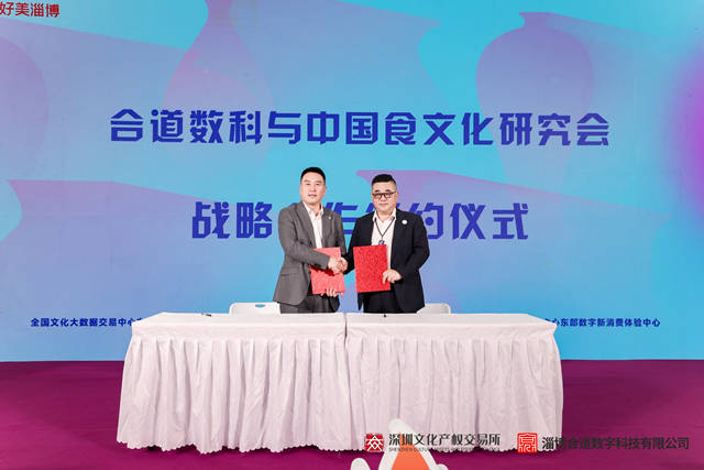 在签约仪式环节,深圳文化产权交易所与淄博合道数字科技有限公司签订了合作协议,淄博合道数字科技有限公司还分别与淄博爱美琉璃制造有限公司、淄博博山雨点釉博物馆、中国食文化研究会签订了战略合作协议,标志着各方将在文化数字资产交易、产业数字化转型等方面展开深度合作,区域文化数字资源整合与创新消费探索进入实质性推进阶段。