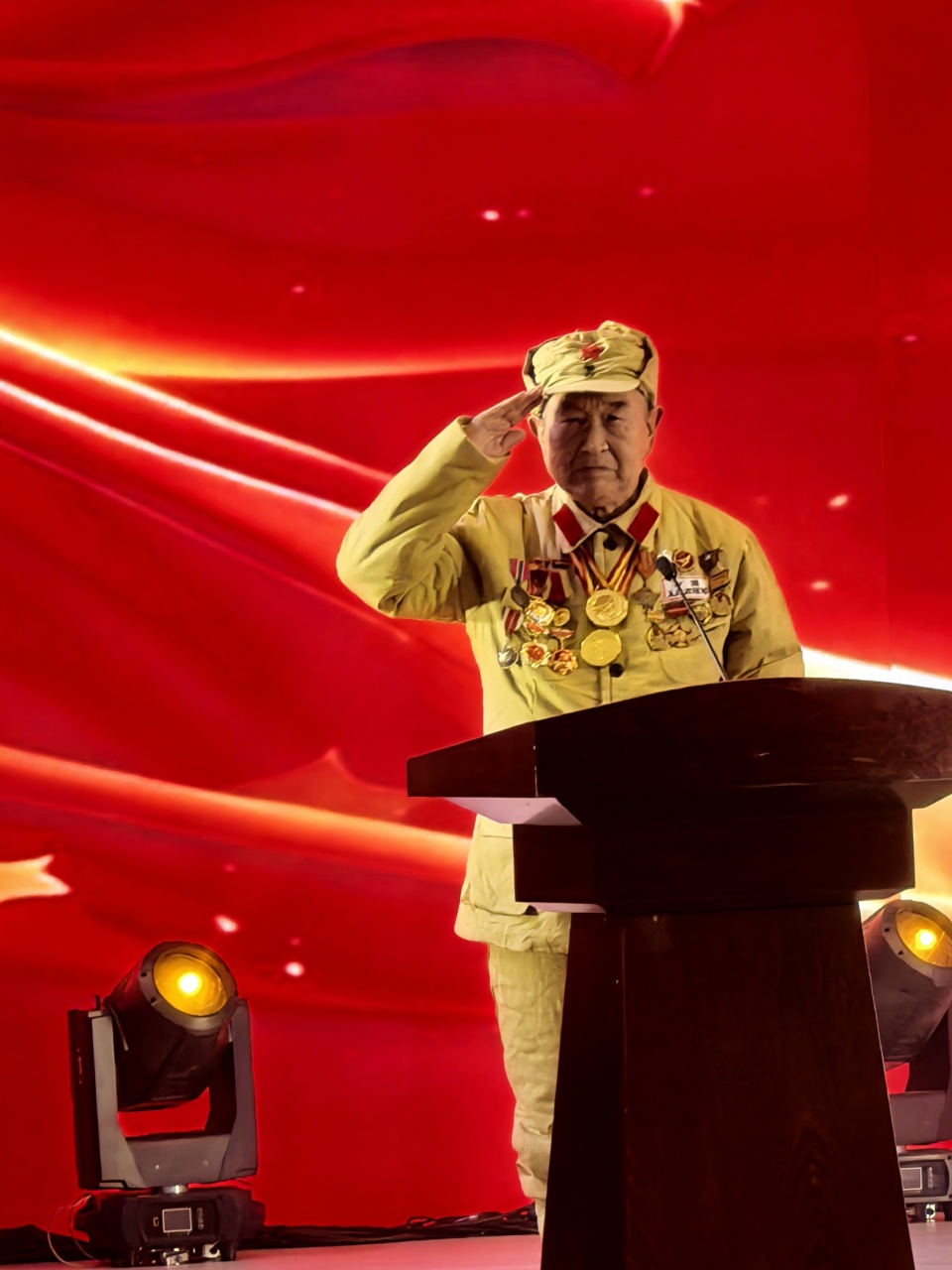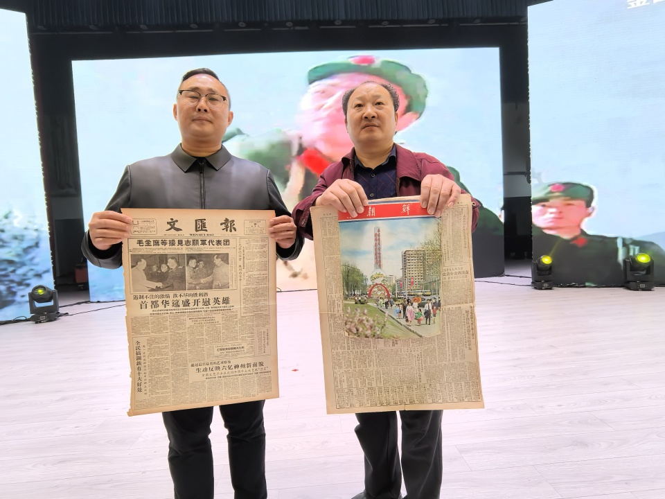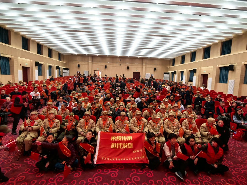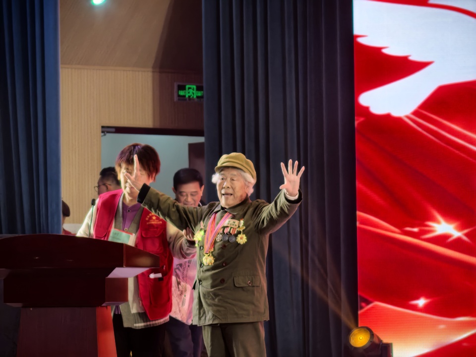 志愿军代表郑东弼、杨兴蓉、陈明兴先后上台发言。他们用质朴的语言,深情讲述那段艰苦卓绝却热血沸腾的历史,分享志愿军战士在冰天雪地的战场中爬冰卧雪、奋勇冲锋,在弹尽粮绝时仍坚守阵地、绝不退缩的英勇事迹,以及对“保家卫国、视死如归”信仰的执着坚守。一个个鲜活的故事,让在场听众仿佛置身当年的烽火战场,深刻感受到志愿军精神的伟大力量。发言结束后,全场齐声合唱《志愿军战歌》,“雄赳赳,气昂昂,跨过鸭绿江”的激昂旋律响彻全场,重现了志愿军战士保家卫国、奋勇向前的壮志豪情。