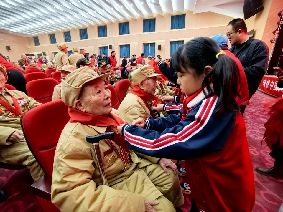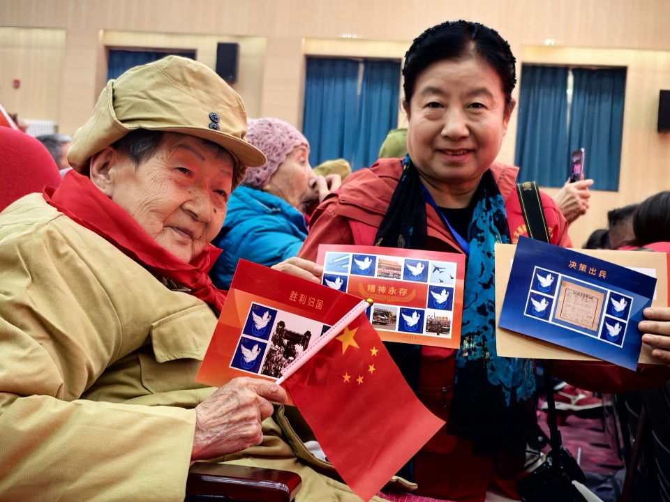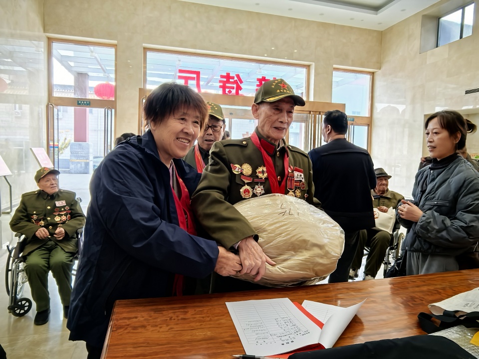 纪念活动后,举行了老兵座谈会。志愿军老兵们围坐在一起,亲切地分享交流,详细介绍了参加抗美援朝的亲身经历,他们的讲述饱含着对战友的思念、对祖国的忠诚以及对和平的珍视。北京志愿军纪念馆(筹)总顾问贾雪阳将军向老兵们赠送“福”字,表达对他们的崇高敬意和祝福。
