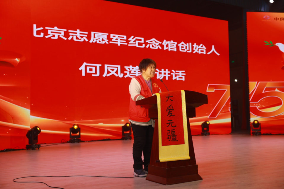 北京志愿军纪念馆馆长何凤莲在致辞中回顾了纪念馆筹建的初心与意义,强调了传承志愿军精神对当代社会的重要性,并对未来进一步弘扬英雄精神表达了坚定期望。她说,此次活动的成功举办,在近百人无私奉献下,我们自筹力量、广结善友,在无政府支助、企业力微的情况下,经一月余周密筹划与安全布防,全力保障抗美援朝老英雄接待工作,志愿军后代亦深受感动、主动参与,力求让老英雄愉快相聚、满意而归。今年是纪念中国人民志愿军抗美援朝出国作战75周年。我们吟唱“湘水之岸,英木苍苍;身在异域,魂归故乡”。向英雄致敬!凤凰涅槃,人天共仰;为国舍命,日月同光。志愿军在:“上甘岭前,挥刀舞剑斩豹狼;长津湖畔,冒雪顶风披弹雨。”“英雄异国在躺着,是为我们今活着。”“鸭绿天光,犹照丰碑碧血;燕凫江影,不惊璧月忠魂。铭记历史,致敬英雄。”
