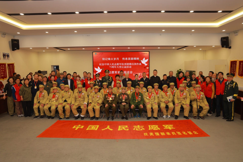 (江山 常魁星 陈胜 黄象红 孙连东 杨洋 陈浩天)“雄赳赳气昂昂,跨过鸭绿江”唱响了中国人民志愿军出国作战的号角,10月25日,纪念中国人民志愿军抗美援朝75周年大型公益活动在北京市房山区韩村河山庄会议中心盛大举行,活动由北京志愿军纪念馆(筹)、北京市房山区爱国拥军促进会、中良福苑健康养老产业有限公司等联合举办,社会各界人士齐聚一堂,共同缅怀志愿军先烈,弘扬伟大的抗美援朝精神。