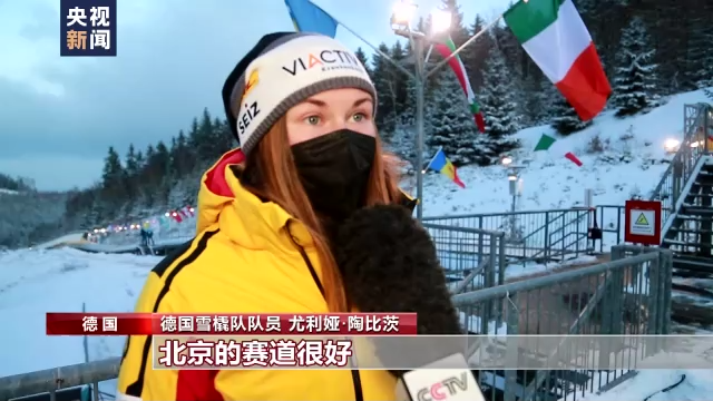 德国雪橇队队员 尤利娅·陶比茨:北京的赛道很好,11月我曾在那里参加过比赛,人们都很热情,场馆设施很不错,祝福冬奥会能成功举办。