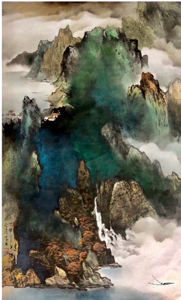 台湾知名艺术家东方藏易林家同博士,本次获金奖作品《云脉》,延续其东方水墨创作脉络,以气韵流动与笔墨节奏构筑画面,呈现能量流转与气场运行之艺术语汇,以留白不白、留白不空,展现其「波频艺术」之核心精神;另被万中选为印度此赛事对外全球电子画册封面之作品《天势》(195×70cm),则以天地之势为构图主轴,融合五行结构与动态能量,一扁舟心清神逸、既白当黑、似与不似之间展现宏观视野与强烈精神张力。